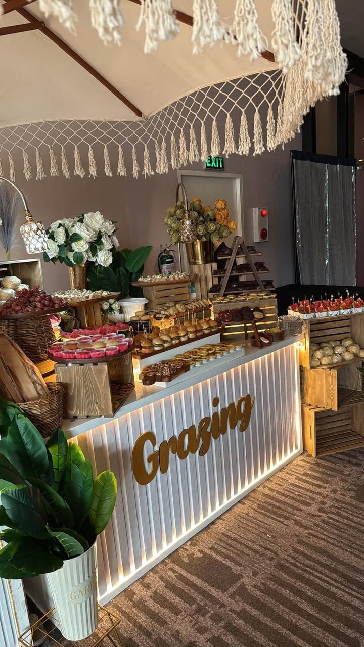 Beautifully curated grazing tables with artisanal cheeses, meats, and accompaniments